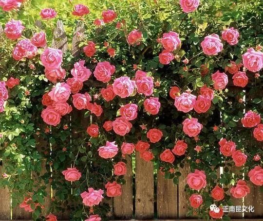 4. 藤本月季(Climbing Roses)藤本月季亦稱藤蔓月季,高度較高,有一季花、二季花的品種,亦有多季開花、花量大的品種。而這類多季開花、花量大的品種,可作垂直綠化的豐花月季用。如:“多特蒙特”(Dortmud)“大游行”(Parade)。