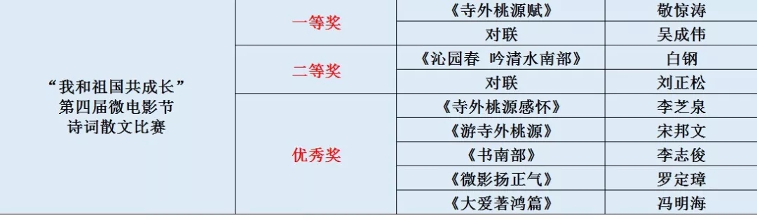 在今天的頒獎(jiǎng)典禮上,我們一共揭曉了微電影/詩歌散文/根雕根藝/武術(shù)四類大獎(jiǎng),并為獲獎(jiǎng)?wù)呒皢挝活C發(fā)了榮譽(yù)證書及獎(jiǎng)狀獎(jiǎng)金等。