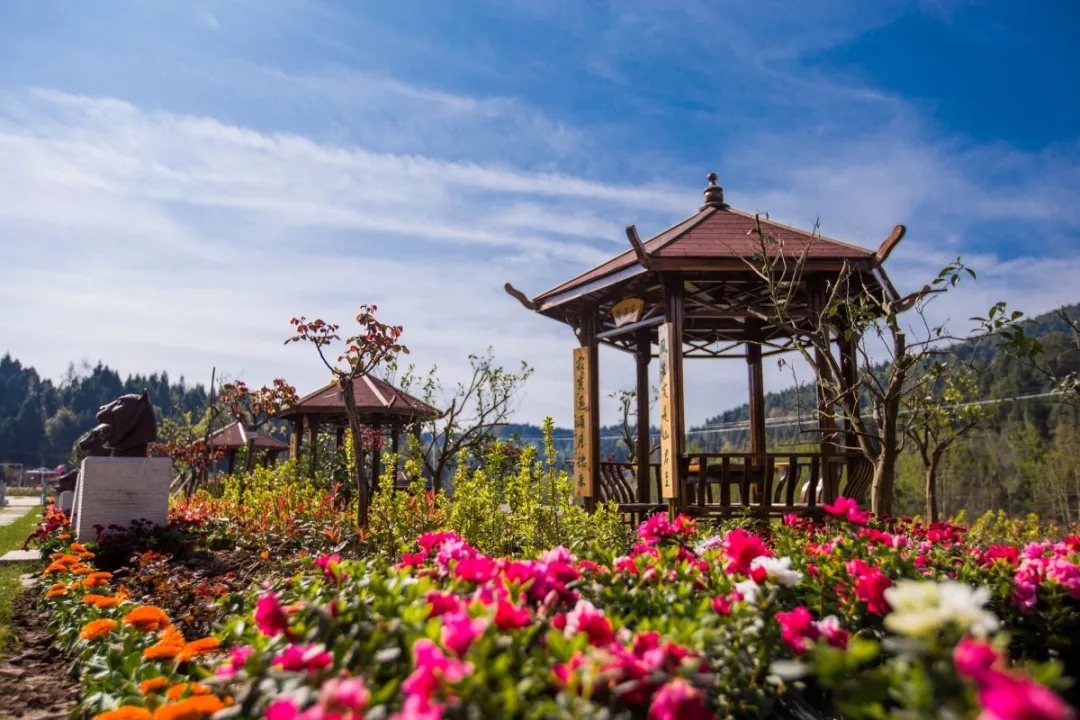 寺外桃源景區位于的伏虎鎮正覺寺村,先后榮獲首批“四川省先進文化示范培育村”“四川省幸福美麗新村”“首批省級四好村”“中國特色村莊”等稱號,因村里有座古寺廟“正覺寺”,故而景區取名為“寺外桃源”。