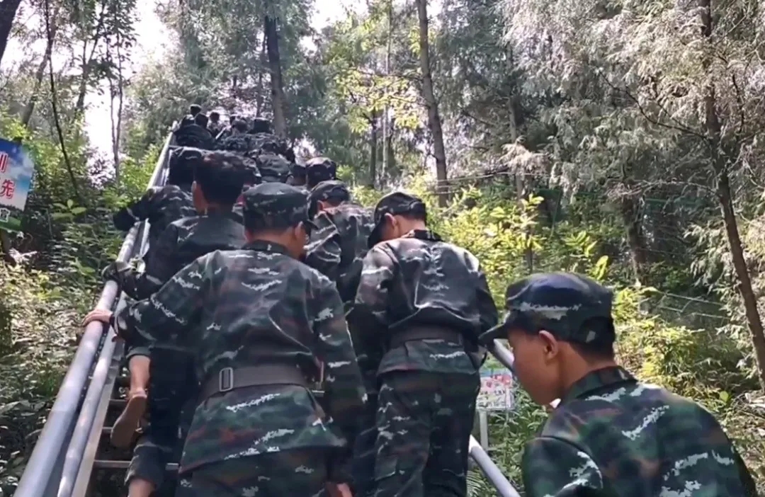 寺外桃源風景區群花吐艷、彩蝶飛舞。一群特別的游客,特殊的“兵”他們身著迷彩服,“全副武裝”走進了八月,走進了寺外桃源風景區。